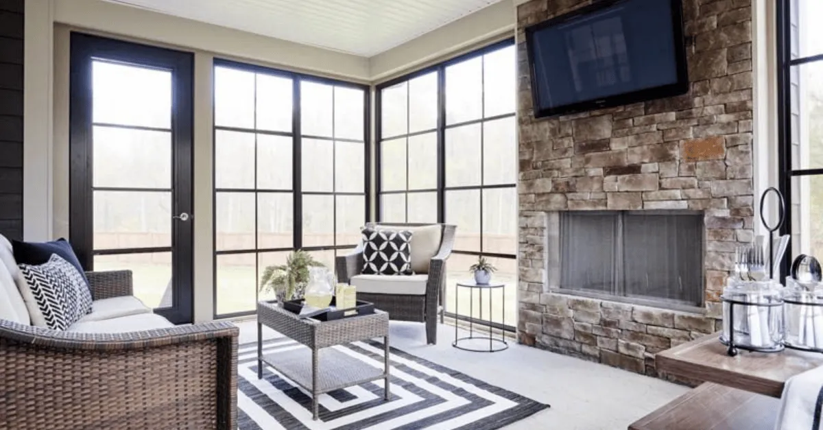 Eze-Breeze Porch Conversion – Upgrade your porch into a three-season room or sunroom with Eze-Breeze panels, providing fresh air, protection from bugs, and weather resistance.